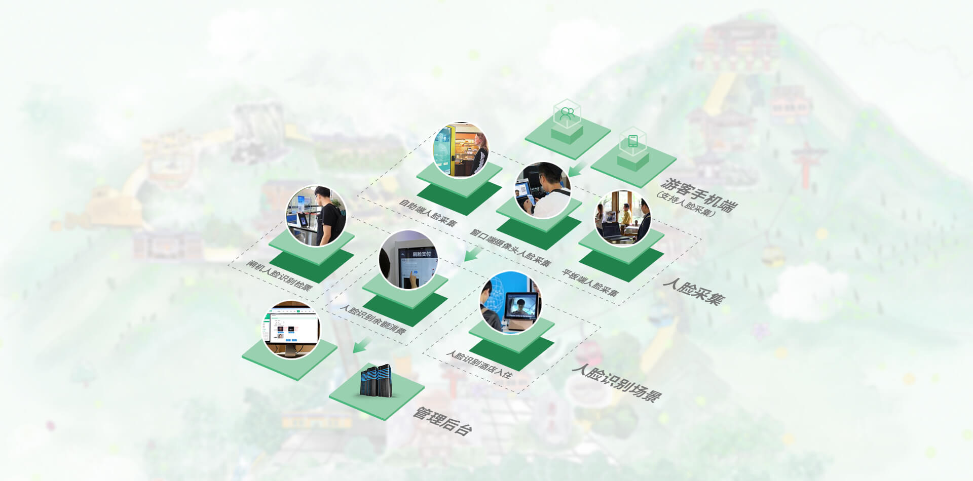 将人脸识别设备与景区通道闸结合,主要用于游客购买年票或景区套票时,再也不用担心忘记带相关证件或是丢失门票,只需要购买时录入人脸, 以后再出入景区时,“刷脸”就可以自由方便出入景区。提升用户验票体验与效率的同时,增强景区管理效率。